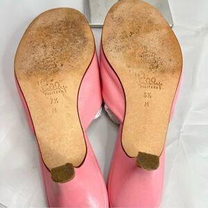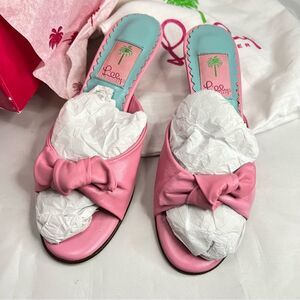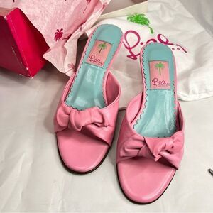 Lilly Pulitzer Women's Napa Sandals Slides Hibiscus Pink Leather Bow Kitten Heel