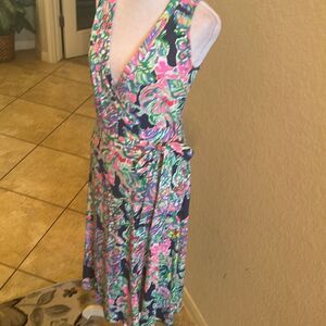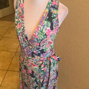 Lilly Pulitzer XS Delfina Wrap Maxi Dress Blue Green Tropical Beach Vacation
