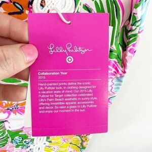 Celebrating the 20th anniversary of Targets collaboration with designers, like this iconic cotton shift mini dress by Lilly Pulitzer. 100% cotton. Fully lined. Back zip. lace trim. vents at side hem. This dress screams Spring/Summer for special events like weddings and other special occasions. with it’s Miami vibe, it is vacation ready.