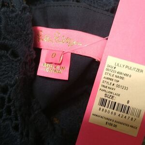 This top has a stunning butterfly lace motif. It is in new and unworn condition. It is fine in True Navy.