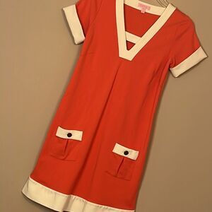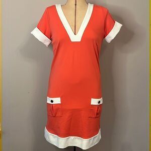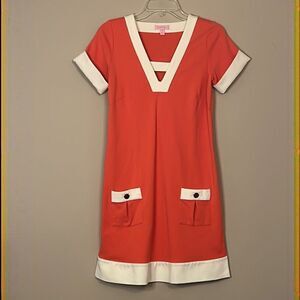 Lilly Pulitzer Coral Shift Dress with White Trim and Front Pockets - Size 2