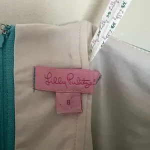 Tiffany blue strapless dress by Lilly Pulitzer size small. Has cotton liner and zips up back with hook and eye closure. Great for wedding.