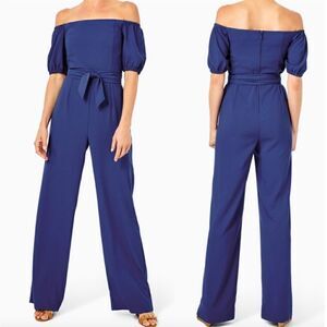 Lilly Pulitzer's Jada jumpsuit is designed with an off-the-shoulder silhouette framed by puff sleeves.