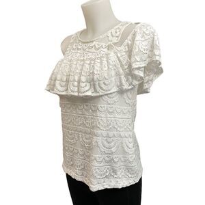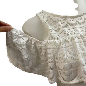 Lilly Pulitzer Lyra Top size XS resort white scalloped stripe lace cold shoulder