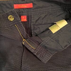 Lilly Pulitzer Navy Blue Waffle Texture Cotton Shorts Size 4, 4 pockets: 2 Front and 2 Back Slash