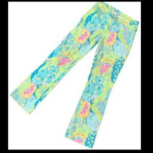 Gorgeous Lilly Pulitzer peacock wide leg pants. Never been worn, no tags attached. Cotton / spandex blend so good stretch. Zipper / clasp closure. High waist and wide leg fit.