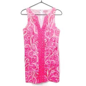 Lilly Pulitzer Ryder Shift Dress Sleeveless Neon Pink White Pattern 0