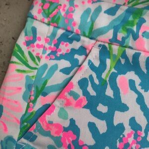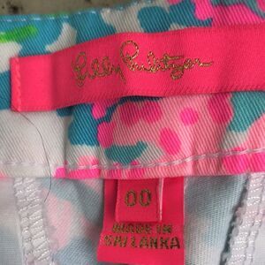 Super cute vibrant in color with scalloped hem. Measuring across the waist is 14.5 from the bottom of the waistband to the bottom of a scallop is 10 inches insane is 4.5. These are in great condition. Check out the pictures.