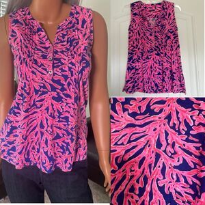 Lilly Pullitzer Sleeveless Top Samba Coral Small Pink Blue Resort Beach Coastal