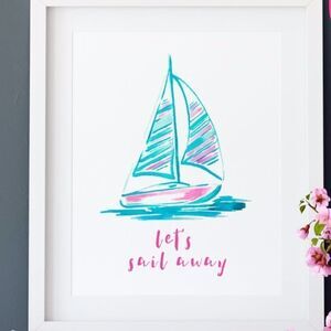 New. LillyPulitzer inspired print, "Let's Sail Away". 8x10. This listing is for the print alone, unframed frame. Bundle to get a discount.