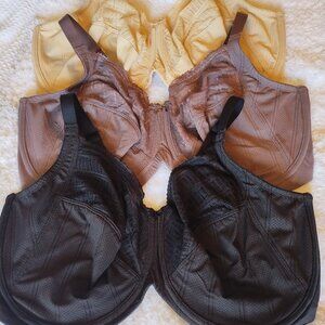 EUC / NWOT - Lillyette Enchanted minimizer bras in Black, Coffee & Beige. Size 42G (42DDDD). 3 bras, 1 price, Great Value! All 3 bras have been laundered (cold wash, hung to dry) but only black bra was worn once. No signs of wear. No stains. New Condition.