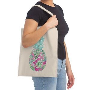 New! Colorful Lilly pineapple canvas tote. Material: 100% cotton. Lightweight and compact. Measuring at 15.75"h x 15.25"w and with a handle length of 21.5”. Not sold in stores. Bundle to get a discount.