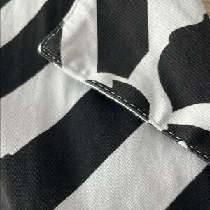 Stylish black and white patterned jacket with button closure. Perfect for a chic look.