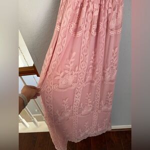 Lilly’s Kloset Boho Off the Shoulder Floral Pink Blush Lace Dress Size M