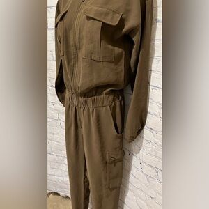 Lilly's Kloset jumpsuit, is a one-piece garment resembling a flight suit. It features a zipper closure, and has cargo pockets on the legs. The jumpsuit has an elasticized waist and cuffs. Very cute! 19” pit to pit, 26” elastic waist, 28” inseam and total length of 58”. Smoke free home.