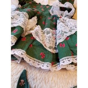 Lilo Childrens Dress Holiday Christmas Vintage Green Red Lace Ruffles 3T FLAWS. This is a lovely dress that's looking for some TLC, it has a couple small holes on the lace, it's missing one button, the fabric has some wear when you look closely and it smells a little like the storage it was in. This would be a perfect Christmas dress, it just needs some love.