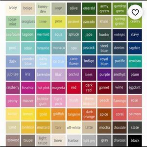 Note Different colors may appear in different shades on various monitors/devices. If you’re unsure or concerned about color please ask. Chart for reference