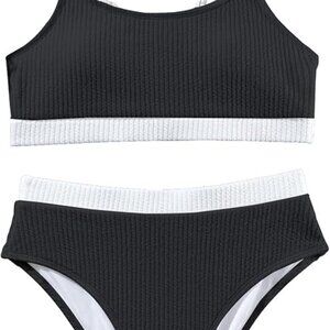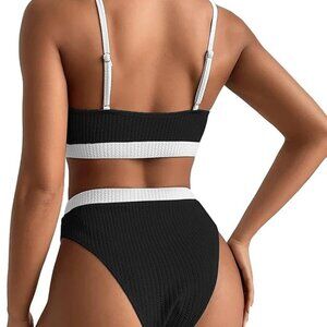 Lilosy High Waisted Tummy Control Ribbed Bikini Crop Top Brazilian Swimsuit Set