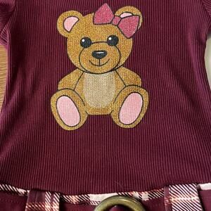 Lilt Burgundy Teddy Bear Plaid Belt Toddler Dress Size 4T