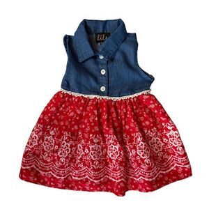 Lilt Denim & Red Floral Collard Dress | Size 6/9M