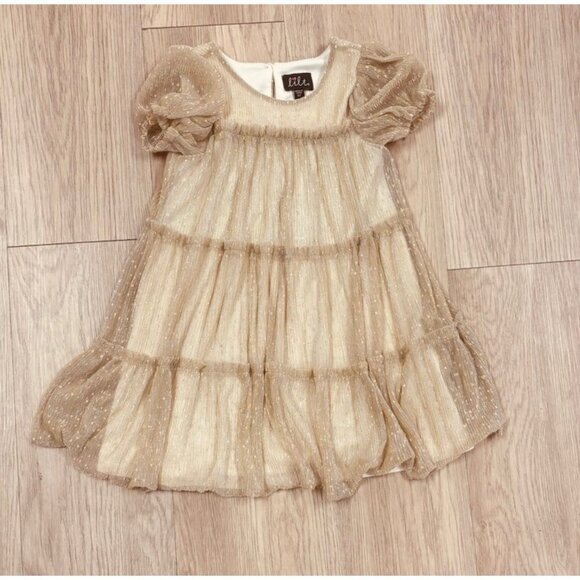Lilt Puffed Sleeve Dress Girls Gold Tool Size 5