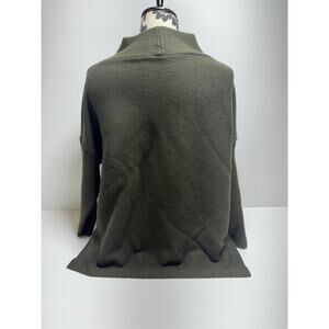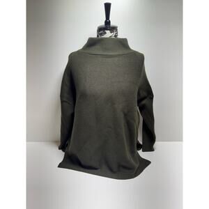 Lilusory Women’s Sweater Green XL Mock Neck Side Slits Viscose Polyamide Polyester Heavy Classic Career Cabin Core pit to pit 25.5” shoulder to hem 23”