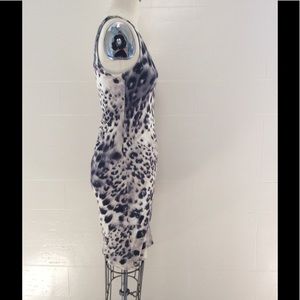 Side draped Fitted Dresss. It's in great condition. Neck opening: 10". Bust: 31" Waist: 27". Dress length: 37 1/2". Shoulder width: 3/4"