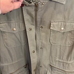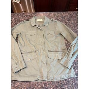 Lily Aldridge for Velvet stylish olive green utility jacket. Zipper and snap closure. Perfect for casual wear. Flattering fit and versatile color. Size XL