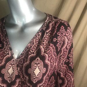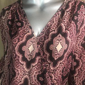 Lily Black Small V Neck High Low Blouse Long Sleeve Tie Cuffs Boho Top Pink Blac