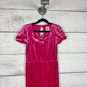 Lily Bleu Girl's Fuchsia Pink Bow Cap Sleeve Velvet Jumpsuit Size 10