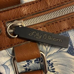Lily Bloom Blue and White Floral Print. Brown Straps And Trim. Silver Hardware
