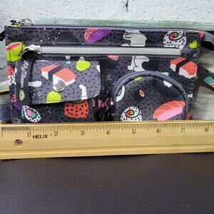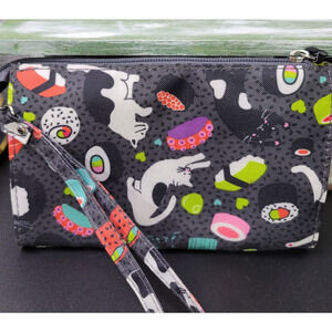 Lily Bloom Cat Print Wristlet Wallet Make Up Bag Eco Friendly Canvas Blue Red