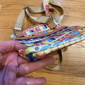 Lily Bloom Crossbody Bag Purse Zip Pockets Floral Bright Color Polka Dot Circle