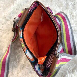 Lily Bloom Floral Crossbody Zip Bag. Excellent Used Condition. 100% Recycled Polyester with Vinyl Trim. Approximate Measurements: