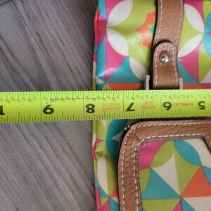 This Lily Bloom crossbody bag features a vibrant multicolor floral pattern. Ideal for daily errands and casual outings. The adjustable strap ensures a comfortable fit.