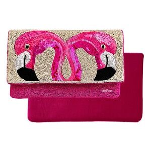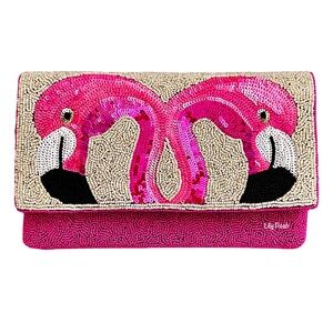 Add a pop of color to your outfit with the Lily Bloom Pink Flamingo Crossbody Bag. This vibrant bag features a playful flamingo design, perfect for any occasion.