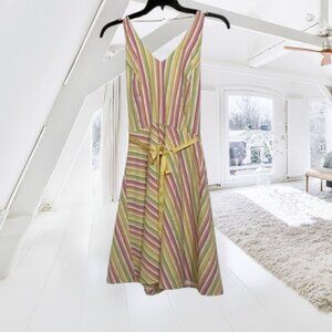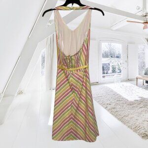 Lily Brand Halter Style Dress With Pastel Stripes and Ribbon Waist