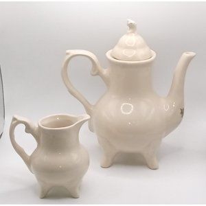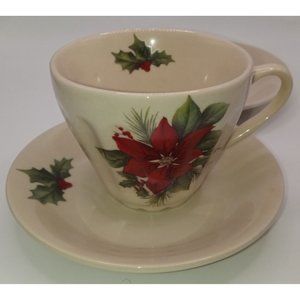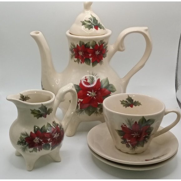 Lily Creek Incomplete Porcelain Tea Set Poinsetta Teapot Creamer Cup 2 Saucers