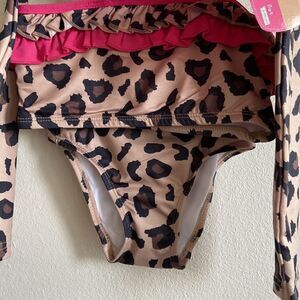 Lily & Dan Girls 3 Piece Swim Set Bikini Rash Guard Long Sleeve Pink Leopard NWT