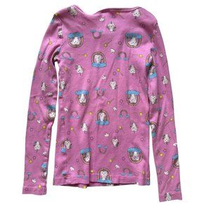 Lily & Dan Girls MEDIUM Pink Cat Unicorn Rainbow Long Sleeve 100% Cotton Pajama Top