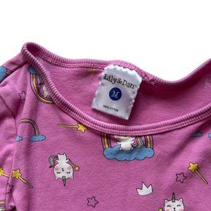 Lily & Dan Girls MEDIUM Pink Cat Unicorn Rainbow Long Sleeve 100% Cotton Pajama
