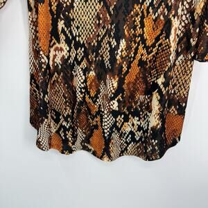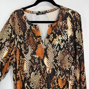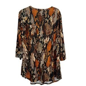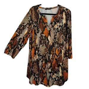 Lily Firmiana Plus 3X Tunic Brown Snake Print Split Neck 3/4 Sleeves Artsy