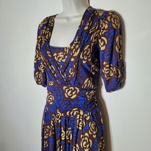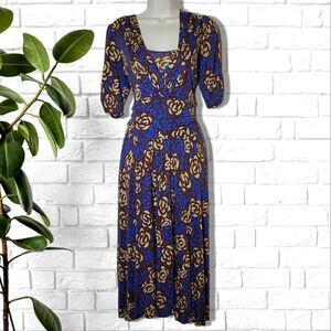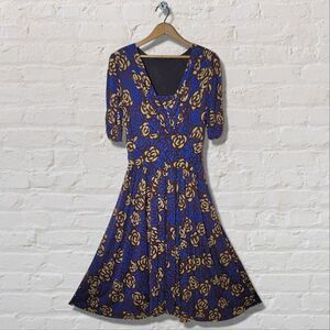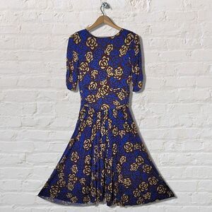 Lily Floral Blue & Brown Cropped Sleeve Dress;