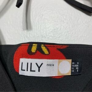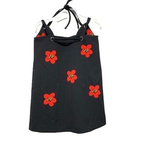 Lily Fresh Mini Dress Black & Red Large Floral Print Tie Adjustable Neck size 2