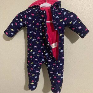 Lily & Jack Navy & Pink Hooded Dinosaur Snowsuit Puffer (Baby 3-6 Months) - NWOT
