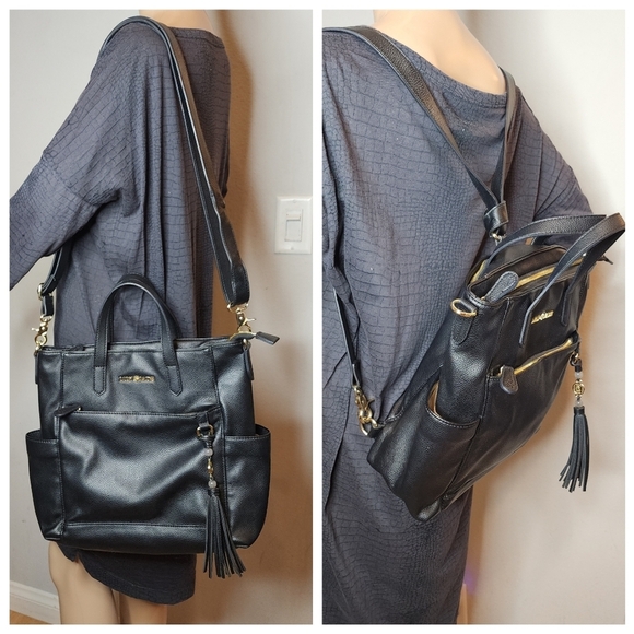 Lily Jade Brittany Vegan Leather Black Convertible Tote Bag Backpack