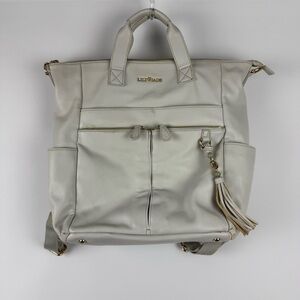 Designed for style and function, the Lily Jade Caroline is the perfect convertible diaper bag that transitions effortlessly into an everyday tote or backpack. Crafted from high-quality vegan leather, this bag offers multiple carrying options—wear it as a backpack, tote, or crossbody (crossbody strap not included). Condition: