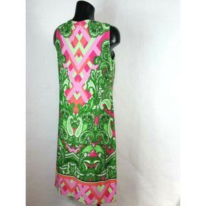Style: Lily Lane Sz M Shift Midi Dress Women Paisley Colorful Sleeveless Tie Up Neck