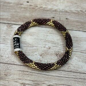 Lily & Laura Nepal Glass Handmade Roll On Gold and Brown Beaded Bracelet
