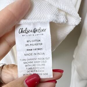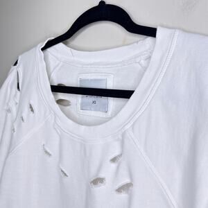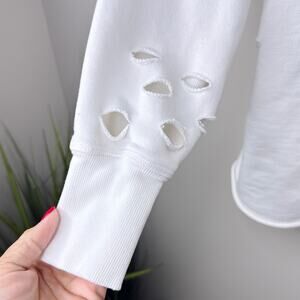 Lily & Lottie Distressed Crew Sweatshirt XS White French Terry Oversized